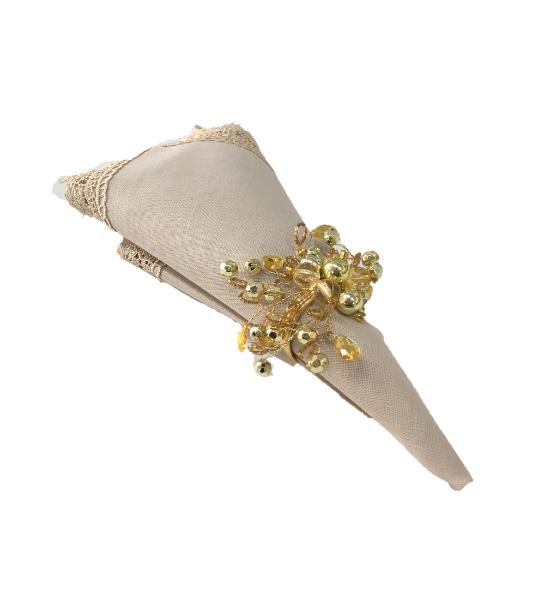 1 Anel de Guardanapo Flor Miçangas Dourado
