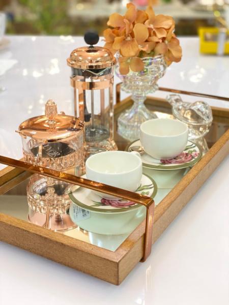 1 Bandeja Castanha na Laca Espelhada com Alças Cobre Rosê