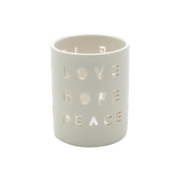 1 Castiçal de Porcelana Love Hope Peace Branco
