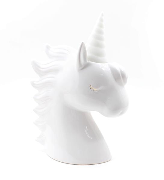1 Enfeite Grande em Cerâmica Unicórnio Branco com Chifre de Led