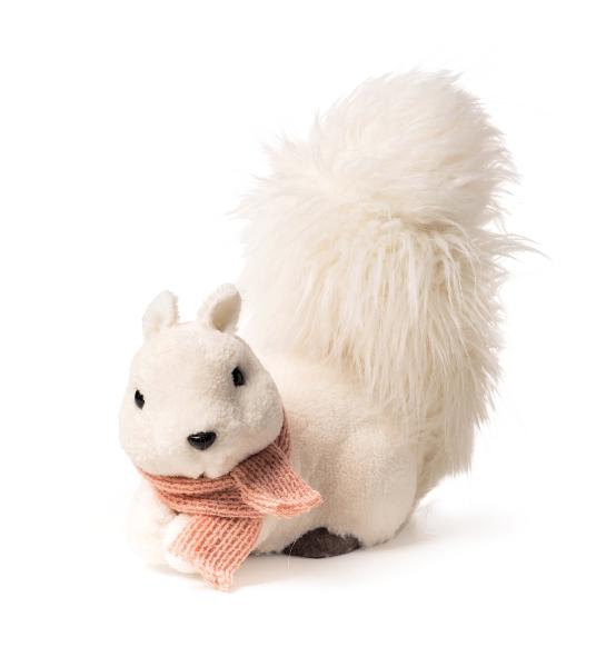 1 Esquilo Decorativo Branco com Cachecol Deitado