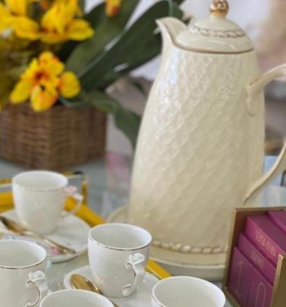 1Garrafa Termica Porcelana Renda Creme