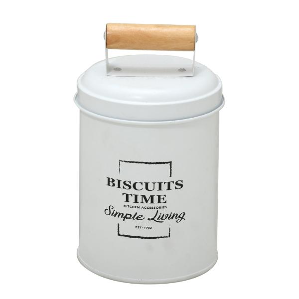 1 Lata Branca para Biscoito com Pegador de Madeira