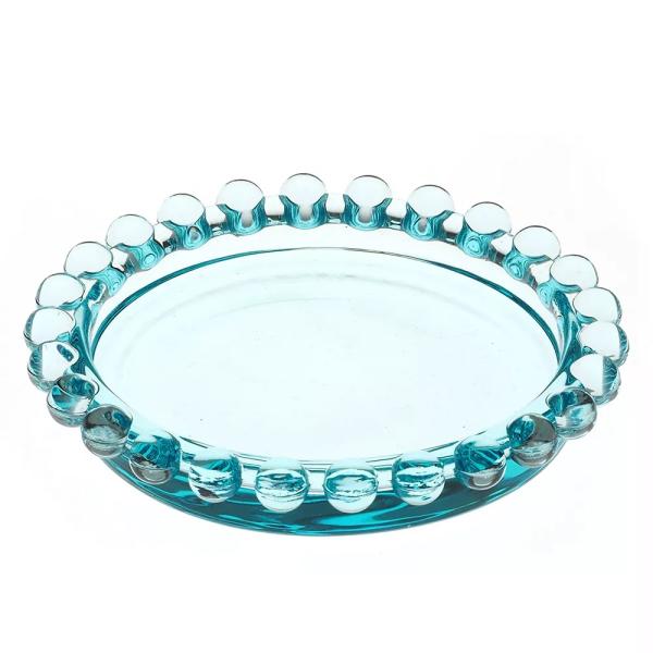 Mini Prato de Vidro com Borda de Bolinha Azul da Quadrifoglio é um luxuoso utensílio que irá complementar a sua mesa posta.