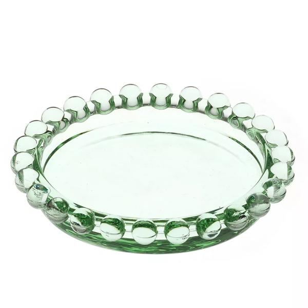 Mini Prato de Vidro com Borda de Bolinha Verde da Quadrifoglio é um luxuoso utensílio que irá complementar a sua mesa posta.