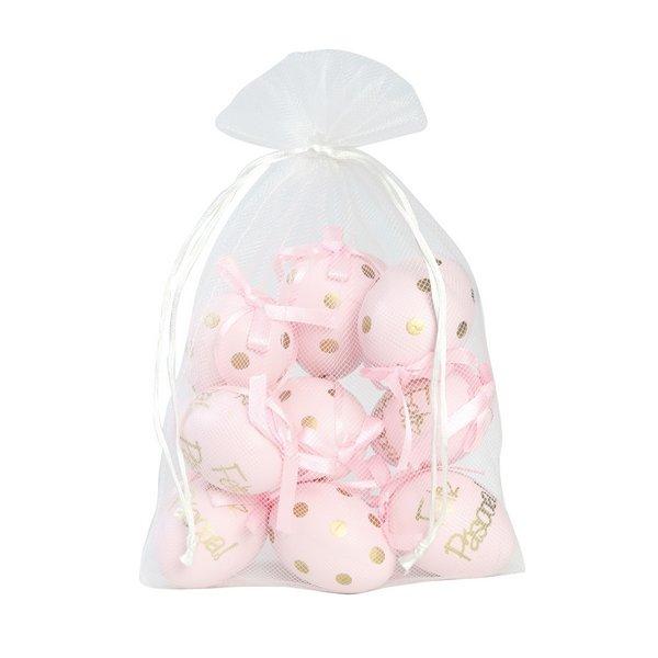 1 Saquinho com 9 Ovos Decorativos Rosa