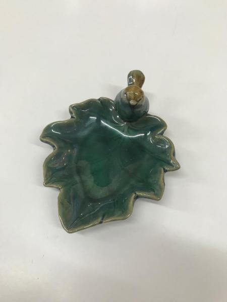 1 Petisqueira de Cerâmica Passarinho Pequena Verde