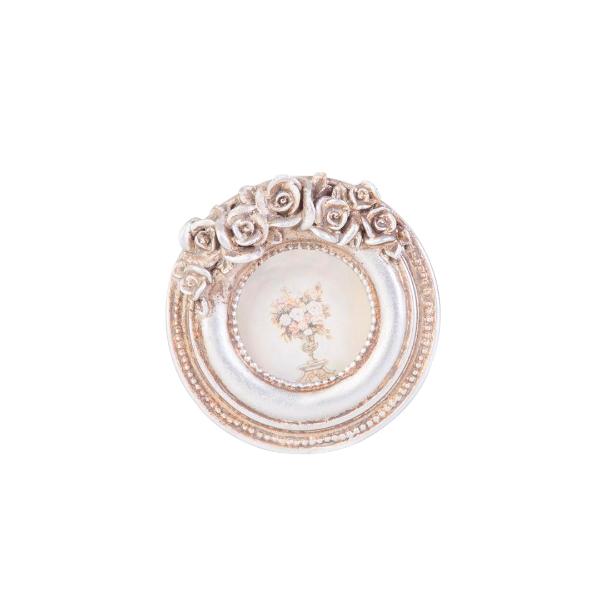Porta-retrato de mesa ou marcador de lugar em resina na cor prateada.
