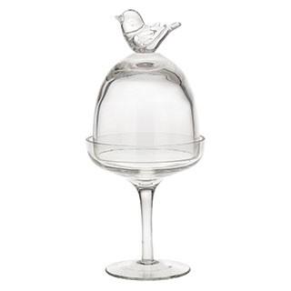 1 Prato com Pé e Redoma 21cm em Vidro Bird