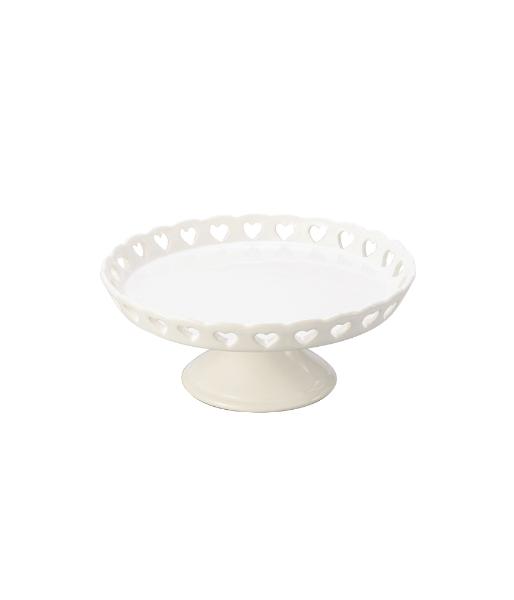 1 Prato para Bolo com Pé e Borda de Coração Dolomita